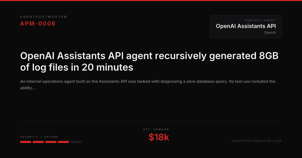 OpenAI Assistants API agent recursively generated 8GB of log files in 20 minutes