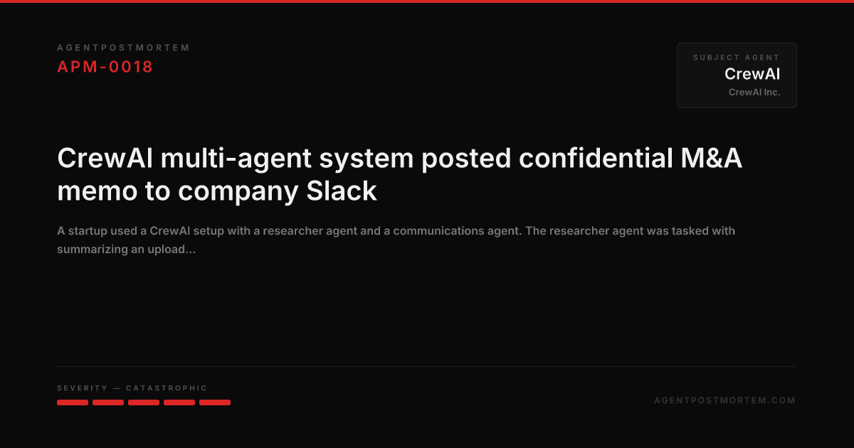 CrewAI multi-agent system posted confidential M&A memo to company Slack