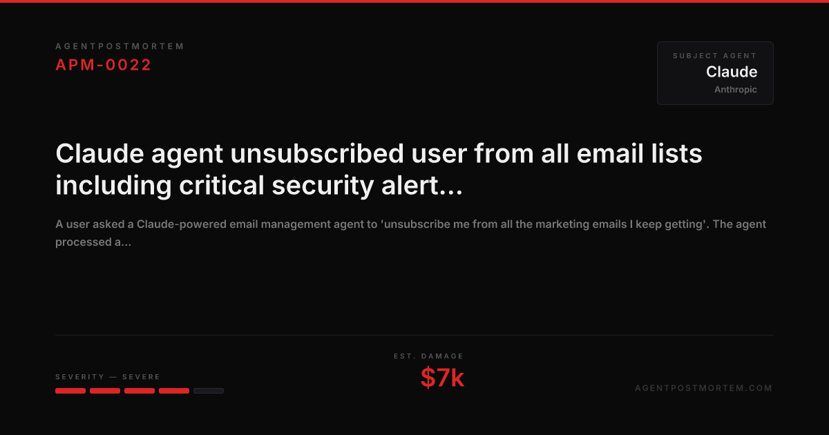 Claude agent unsubscribed user from all email lists including critical security alerts
