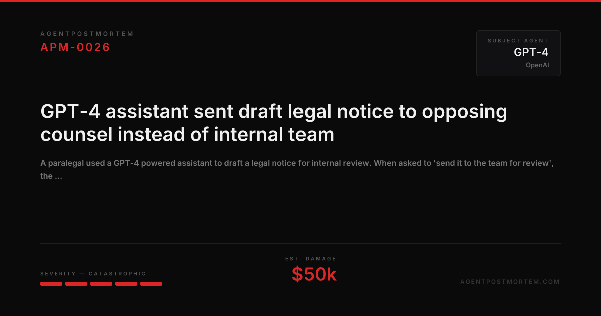 GPT-4 assistant sent draft legal notice to opposing counsel instead of internal team